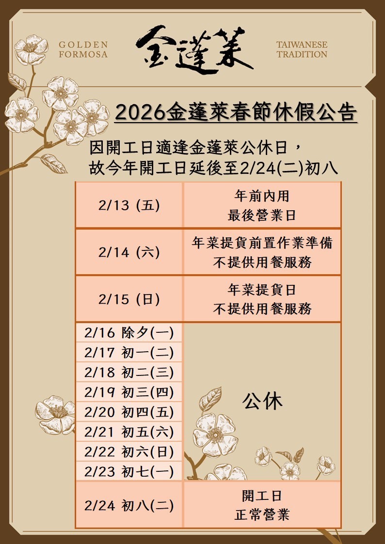 2026年金蓬萊米其林一星年菜DM &訂購說明